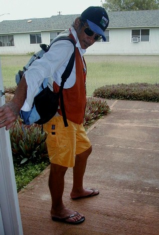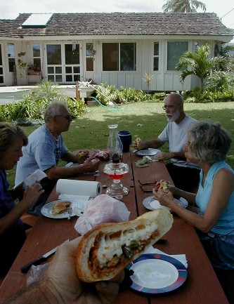 I was planning on finishing Artmail on the 4th and putting it online on the 5th. At 6:30 am on the 4th, the phone rings and it's Lars, my photographer friend from California who is on Kaua'i with his girlfriend, Cheryl, for a two week photographing vacation. His birthday is on the 5th...Cinco de Mayo. He wanted to visit that day and celebrate on his birthday, too. That sounded like a real good idea and my Artmail would have to wait until the 6th. That's today! But today, I'm getting a ride with Tashi to Lihue to buy supplies for the Polivan (tarps and things). I will not finish this Artmail today.