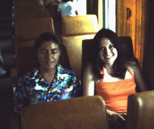 I got the seat that I wanted and settled in and read a photo story of the restoration of the largest Buddhist temple in the world...Borobudur (a replica of the Great Cosmic Mountain of the Universe), which I had visited the week before. Shortly, I thought that I would check the train's drinking water supply at the end of the car. When I stood up, there were the girls a few rows back, trying to put their packs up on the racks. As I was waiting for one to give the last push into the rack before I went by, lo-and-behold, that pack fell right into my arms. Right away, I figured that was a good omen for the train ride...and if that backpack fell on purpose, it was a stronger omen. I got the pack up and then we exchanged some greetings. Pam and Noreen were both teachers and Canadians. Noreen was teaching in Japan and Pam was teaching in Toronto. I was still teaching in Ojai.