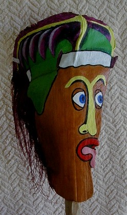 PFP 10 is just one of the palm frond faces that will be used to sponsor boomerangart.com. I have the option of accepting a direct offer "that I cannot refuse" from someone who wants to provide PFP 10 with a home. Even though I no longer have a particular PFP, it will still figure into the growing Purple Feather People Family and its continuing story. The owner may name the PFP and add to or update its story on the PFP's web page on my website or make a website of its own. Who knows where this thing is going? It is part of a living creation in both cyberspace and earthspace. I'm having fun with it and will continue to do so.
