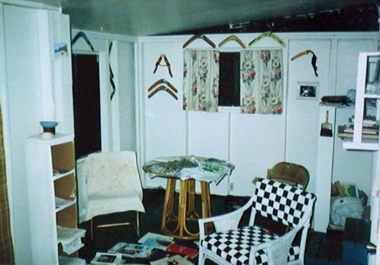 That's a younger Boomerang Art straightening that painting as Mercedes shot the photo.