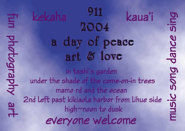 Before, I put up Mich photos, I want to catch up on what I was going to do in Artmail 117b. At Tashi's art show The Polihale G-String Band will entertain.