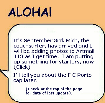 I didn't finish with what I was going to do with Artmail 117b because after I got back from Lihu'e, Mich telephoned me. He was already on Kaua'i and I hadn't answered my phone. So, he drove his rental car out to Polihale for a swim. He was shocked encountering the cane road. I explained to him that it is not a state or county highway...it is a road for hauling sugar cane, primarily. The state has an easement to allow public access to Polihale State Park. (It is pretty much accepted that rental cars may drive to Polihale even though the road is not paved. Many tourists do turn back when they see the start of the cane road...that's their loss).