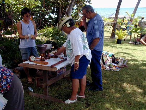 The Kupunas make Polynesian crafts to raise money for scholarships. They also played ukuleles and sang for our pleasure.