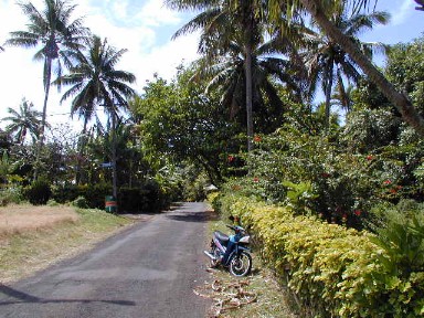 We rode on the 1000 year old Ara Metua. The Ara Metua was ordered built around the island out of coral blocks about 1000 years ago by a famous chief, Toi. Rarotonga is the only Polynesian island with such a structure. When I rode on it in 1985, some parts were covered with soil...the rest has asphalt...now all asphalt.