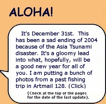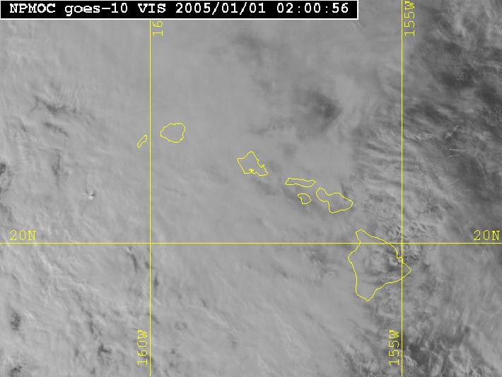 The Indian Ocean Tsunami disaster and suffering by so many has cast gloom over the year's end and beginning of the New Year. Even the heavens above Kaua'i and all the Hawaiian Islands are crying. There has been rain, rain, rain and dark skies that seem to be reflecting my mood. I made a copy of the Big Blue Satellite picture of the Pacific this morning which shows the huge mass of storm clouds hiding the Hawaiian Islands: