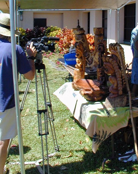 Clifford Apo (on the right) and his art. You've seen him at Polihale.