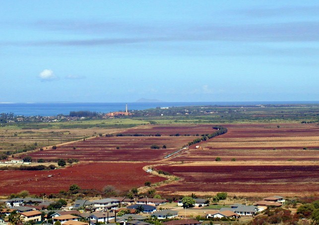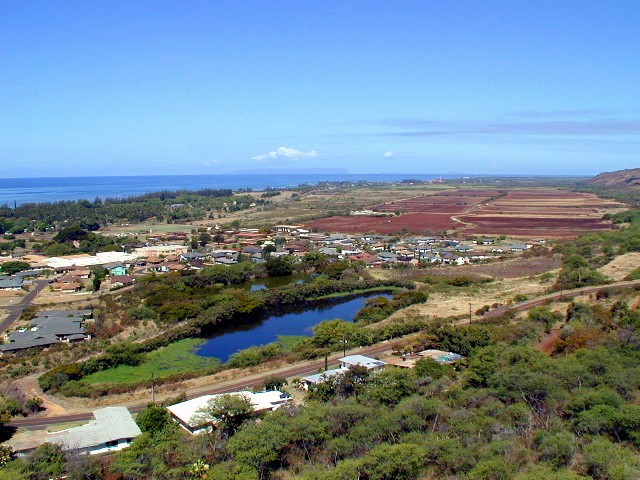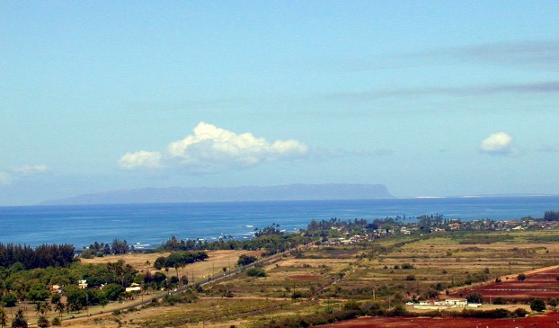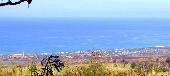 Olokele Sugar Mill in the distance, Pakala's surfing place at the right.