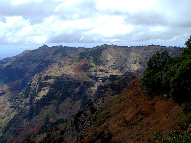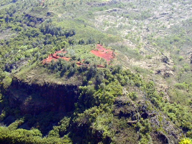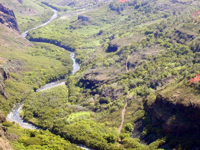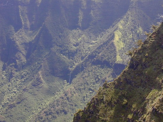 At the left in the photo below, is the ridge trail which leads to Waipo'o Falls. Those little dots are people on the trail. The falls is on the other side out of view.