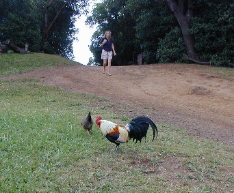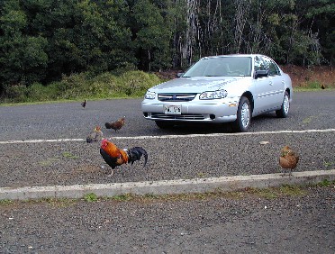 Chickens hanging out at Pu'uhinahina (Poo-oo-heenah-heenah) Lookout.