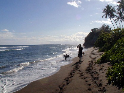 Kekaha Beach got crowded on the weekend of the 4th, but on any day it is a nice one-block walk to the beach from Kekaha Ha'aheo through this pathway: