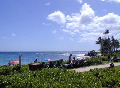I'm in the process of doing a big stored stuff cleanup...taking photos of what I want to remember before throwing most away...so I've taken a break from painting and working on this website. Going through about everything I have stored in boxes and unfinished art projects and materials will take weeks and I want to get it completed before I travel. Last week, I went to Lihue then to Dallas and Gilbert's house/farm. We went to the Waiohai Resort's beach in Po'ipu for a swim. I was surprised at how crowded it was on a Thursday. Many of the people on the beach and by the pools will spend most of their vacations here and miss most of what Kaua'i has to offer visitors. Lucky I live Kaua'i. The lighting wasn't very good for snapshots, but here are a few: