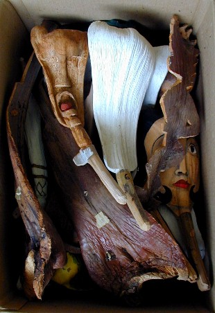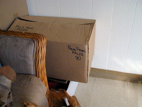 Old palm frond faces and masks back in the box.