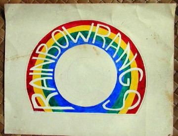 The first "art" of mine that I tore up and threw away in this project was the logo design I drew for the Rainbow Rang trademark that never happened (long story). Now, there are just photos to remember it by: