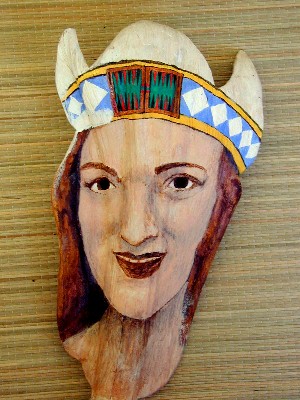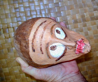 Here's the first mask I painted using a palm frond base from the coconut tree at 9C. It was done before I learned how to properly prepare the palm frond for painting. The palm frond bases from Polihale are much better to use because they are not so thick and dry out a lot thinner and lighter.