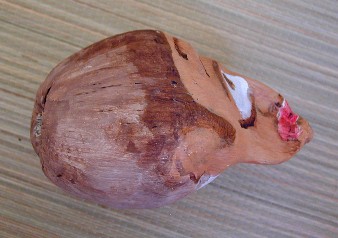 I also did some where I put in cowrie shell parts for teeth and when the palm frond dried, the shells were locked in. I was planning to use puka shells for eyes.