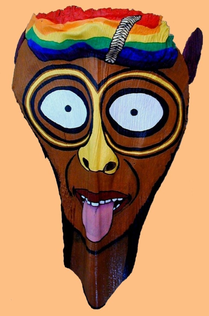 I have finished the Rainbow Tranceman PFP. After I signed then sprayed with acrylic clear, then set frond upside-down to dry, the "2" in the "2006" slid down mysteriously...not leaving a smear. I decided to leave it that way.