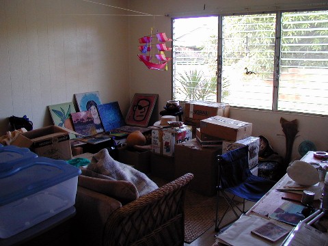 Later, a lauhala mat will be attached to the plyboard that can be leaned under the eaves if it rains.