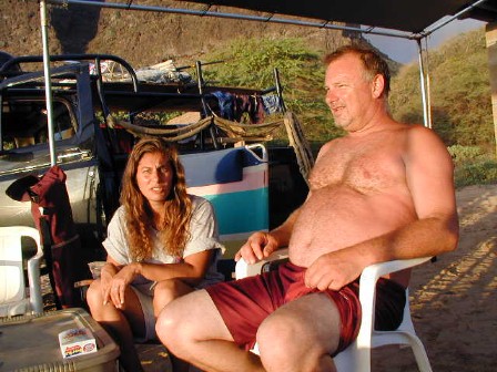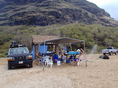 May 27th of the Memorial Day Weekend at Polihale...TTashi and I took a ride out to Polihale. I needed some Polihale sand for my wedding present and I wanted to check out the graded cane road. The road to Polihale is the smoothest it's been for a long time. The cane road and the park roads had been graded all the way to the farthest-in pavilion. I was able to even drive the Tercel to it...