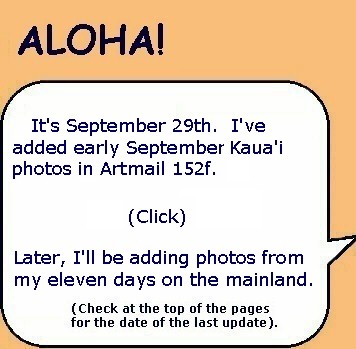 Here it is almost the end of September, and I have about three more pages of Artmails for that month. On the 14th, I flew to California to help my sister move into her new home so there are some California photos to come. First I'll put some of the Kaua'i photos on this page.