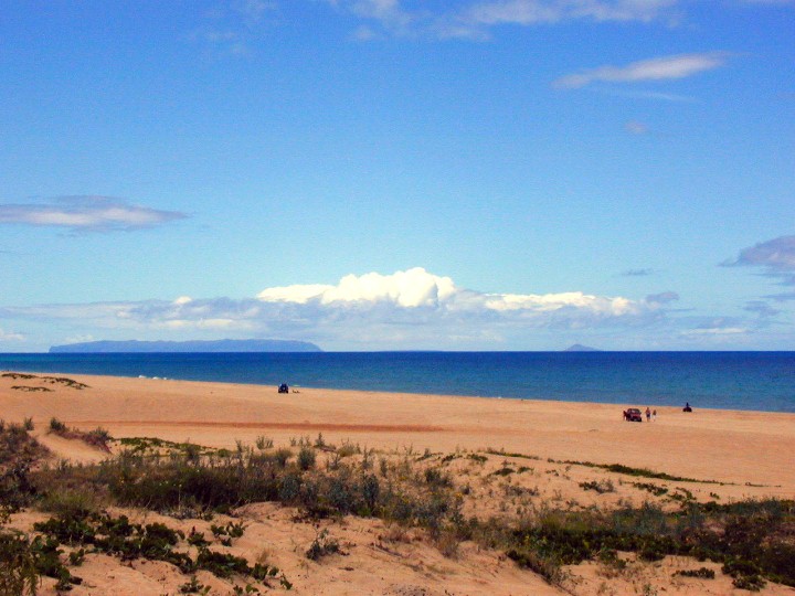 This and the following three photos show the highway next to Kekaha Beach from Kekaha Park to the Lifeguard Tower.