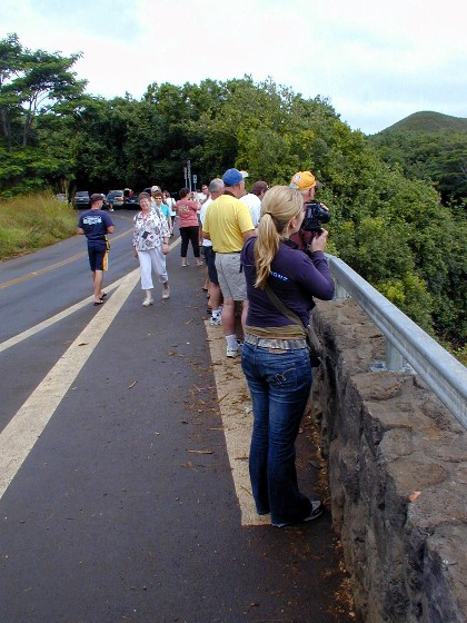 It happened that there were no rentals available at that time from Island Cars, so we had to rent a more expensive one from a regular agency. The first view stop was Wailua Falls. There have been many changes since I was last there and there were more cars and tourists then I have seen here at one time (which was true for most of the other places visited that day).
