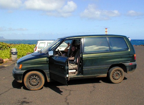 In order to explore Kaua'i, it is best for the couchsurfer to have a rental car. It is possible to rent older cars from Island Cars at lower cost. I caught the Kaua'i Bus in the morning and rode to the airport to meet Birgit and get a rental car and take a tour to the Northshore and Ke'e Beach at the end of the road.