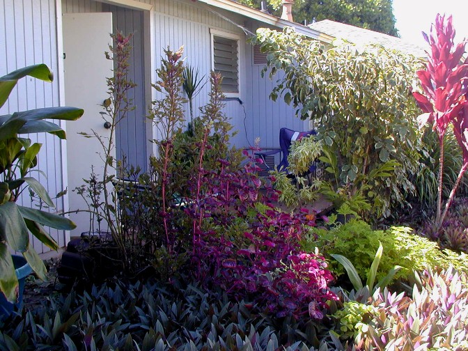 The next day, the weather didn't cooperate for sightseeing, so we mainly stayed near 15B, did chores and talked story. Earlier in December, I took these photos of 15B and my little garden...and The Nook...(another place to use the former Pvan's sleeping platform).