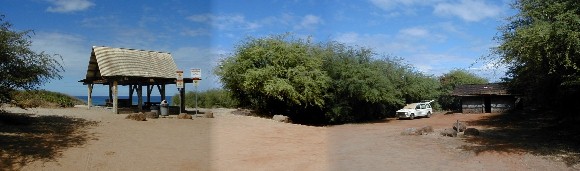 This is a quickly-stitched image of Cane Top Pavilion and my Polivan in 2002.