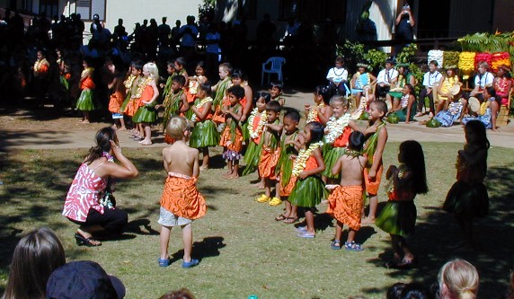 Next, the kindergartners...to do their hula dance...
