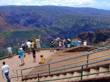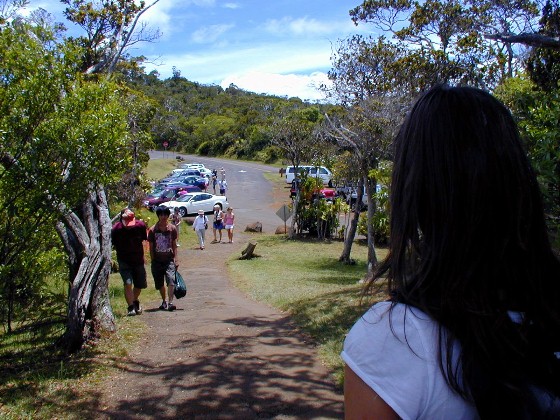 It turned out, on that week day morning, there were no compact rental cars available anywhere. We took the bus to Kekaha instead and got in my old, questionable Tercel and some munchies and headed up to Koke'e Park and the Waimea Canyon and Kalalau Overlooks. (Trusty Tercel made the trip fine and no over-heating).