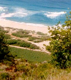 Tumu Nu's makai entrance is at the left...a network of beach morning glories.