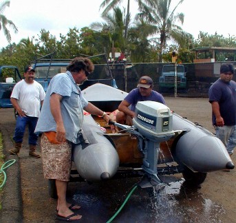 On August 14, Clifford took Timmy, Doug and I on the Wailua River cruise to Fern Grotto to test the repairs he made on a "good deal" zodiac, motor and trailer he bought.
