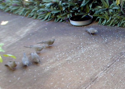 When there is a sudden noise or one of the new-to-the-scene doves panics, they all fly up in a bunch, but immediately come running back...