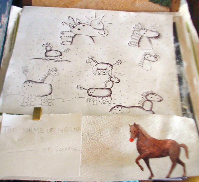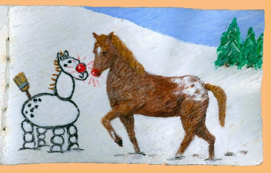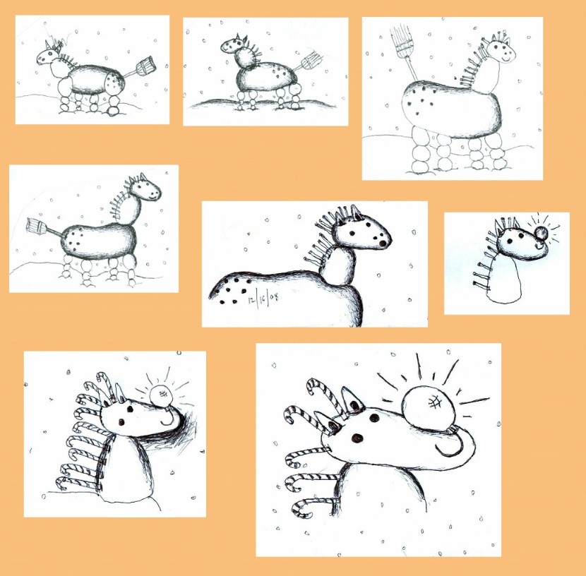 When I returned from the dentist, Auntie Lor had drawn several variations of her snow horses....