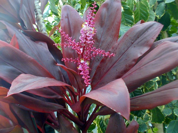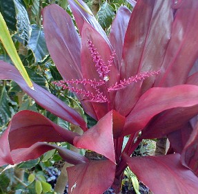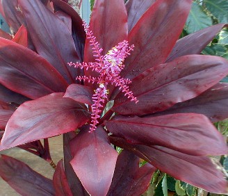 I haven't been in an Artmail-making kind of mood since the my old digital camera doesn't work. I took quite a few photos of some pretty interesting things, but only a few got saved to the card even tho' there was a click and a flash. I have a newer little camera that I'm not eager to start using. I'll put some of the last shots with the old one. My Auntie Lou ti plant was starting to bloom...