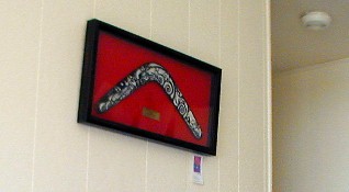 I'm going to be painting with acrylics again. This is the last boomerang that I shaped myself and was painting for Brian S. back in the early 1990s. I want to finish it and do some other art projects. I will also be scanning old photos and slides some of which may find their way to these Artmails.