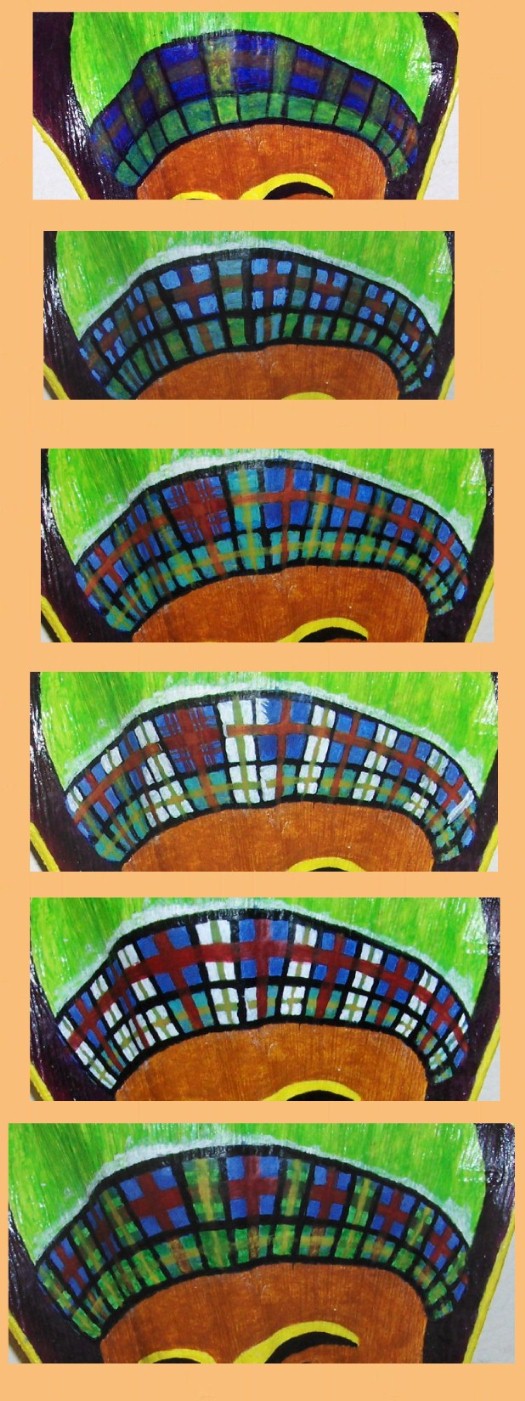 My project is to paint this MacDonald tartan design on PFP002's headband. The tartan's colors are from woven colors which creates a blend of the two colors where they intersect. To include the blend colors on the painted headband makes for difficulty, but I will attempt something like that using plenty of "artistic license."