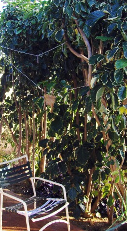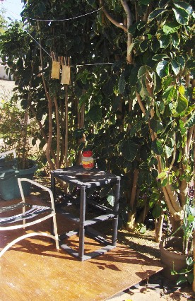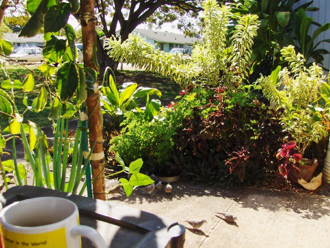 My mini-jungle view from The Nook. The doves will soon arrive, as usual.