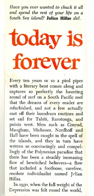 Now, I am rereading Today is Forever by Julian Hillas (Dashwood).