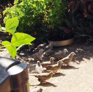 When I sit in The Nook, I usually take a container of rice because the doves will come around and they are fun to watch their behavior...here they come now...