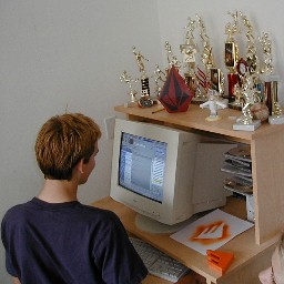 Ryan at his computer. Check out his trophies.