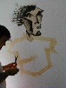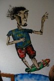 My son, Michael, did one of his spray can figures on Ryan's bedroom wall. A picture story of the art follows: