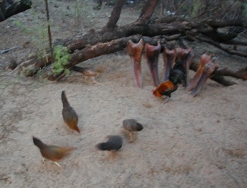 Not a good photo of some of the chickens and 6 palm frond bases.