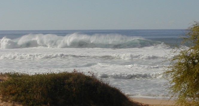 Later in the day I was up at Cane Top Pavilion looking for the return of the humpback whales. They are late coming to Polihale this year. Tashi saw some off from her house last week, so I've been waiting for their return here. It's amazing watching them when they are having fun offshore. It's also enjoyable watching the large surf pounding the shores. I tried to capture some of that action with this series of photos. Scott MacD and Tony B will appreciate these:
