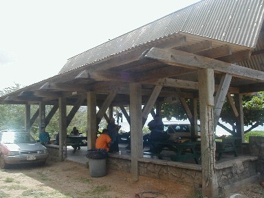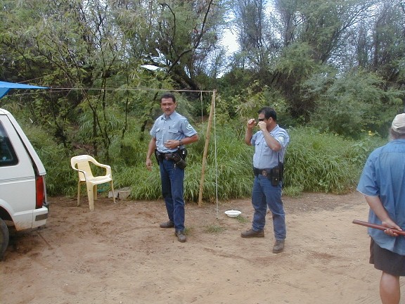 It's the 18th at the Double-Burner Pavilion. That's the newly-formed Polihale G-String Band warming up in the background.
