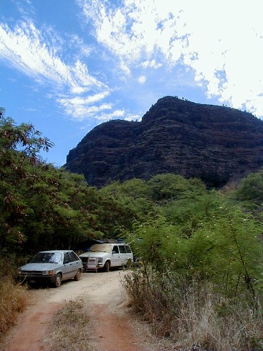 So you can get an idea of where my "field studio" is and where the accident happened, I've manipulated a before-Iniki aerial photo. In the enlargement, my spot is where the upper right white dot is.