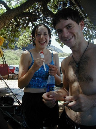 Alysa from Houston and Jeff from Atlanta enjoy raw fish for the first time.