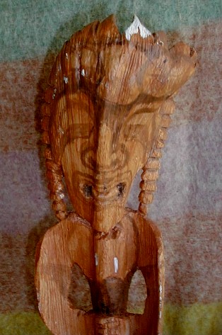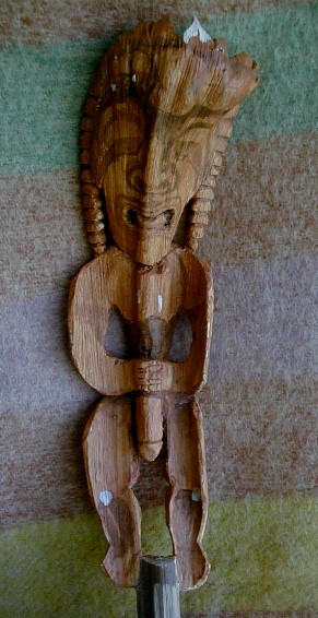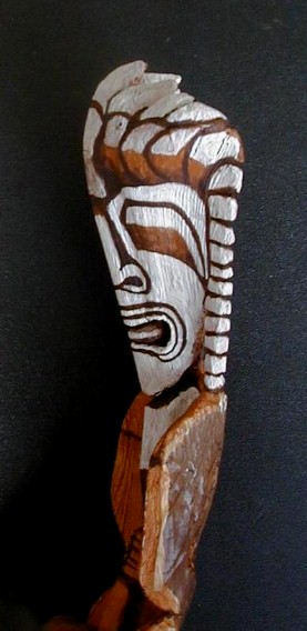 This is one I carved before it was dry. I didn't finish painting it. It is a blend between Hawaiian and Rarotongan styles. Maybe it's a Kona-style Kanaloa/Tangaroa image. I'm going to finish painting it.