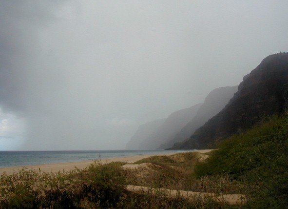 I went to Polihale and it started raining at my place. I didn't want to set up my tent etc. so I came back to Kekaha to work in 15B. I took these photos while at Polihale: