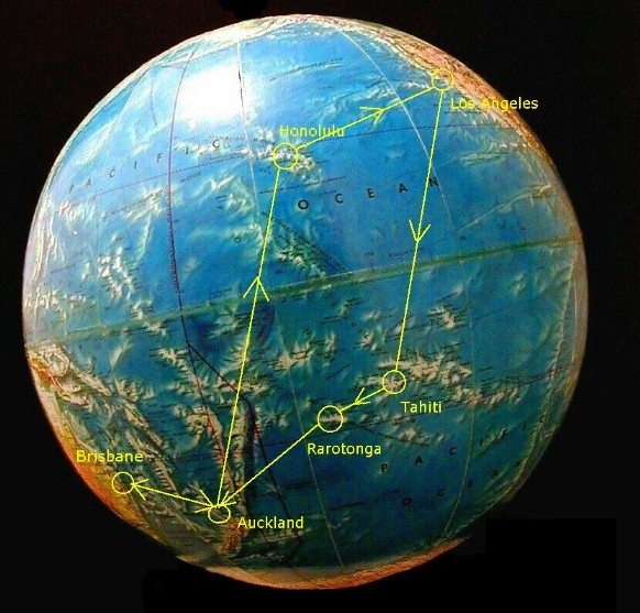 Yes, I plan on going to the mainland in August and, after doing some concentrated online work, I may take a circle Pacific package returning to Kaua'i the long way...LA -> Hong Kong -> Bangkok -> Bali -> Brisbane -> Auckland -> Cook Islands -> Honolulu -> Kauai -> Honolulu ->LA or one as pictured below if I can add the Bali, Bangkok, Hong Kong part to it.